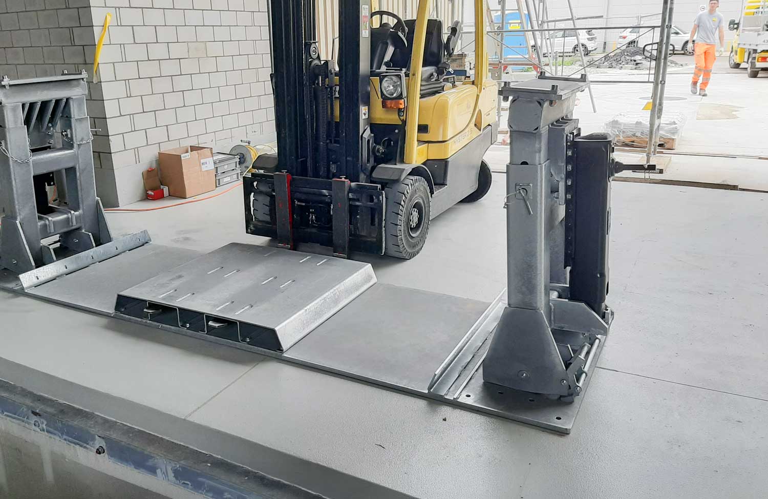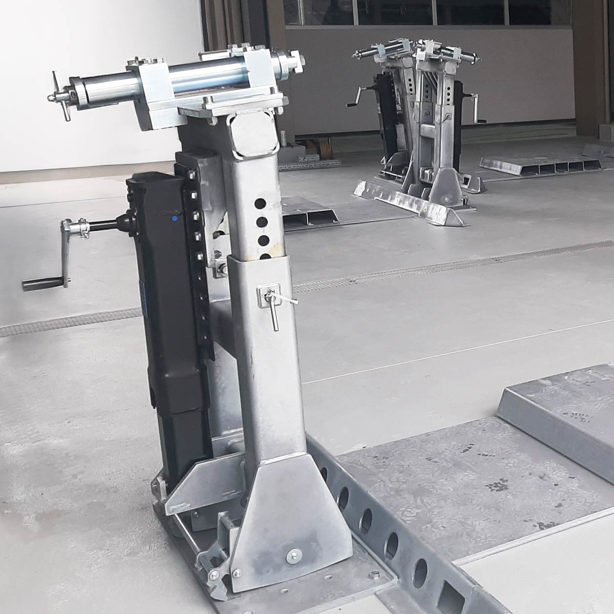 Handling: Positionierung über mobile Stützen in Kombination mit LKW-Luftfederung